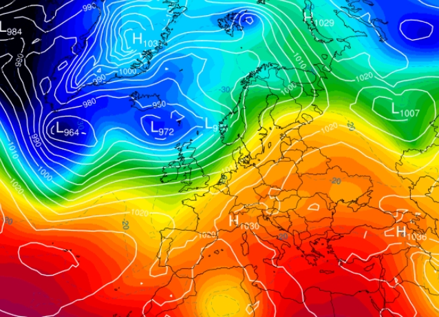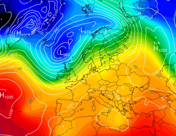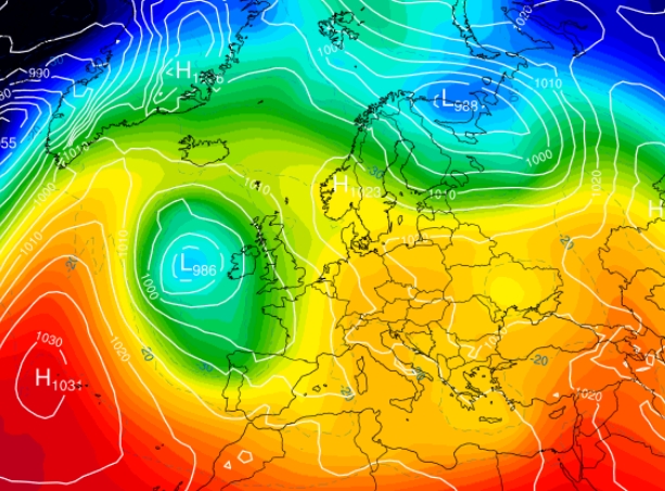 Cette semaine, des courants de SO plutôt anticycloniques très doux se sont maintenus en début de période mais dès ce jeudi basculement vers un temps plus agité via la dépression au dessus de GB :