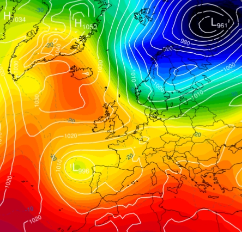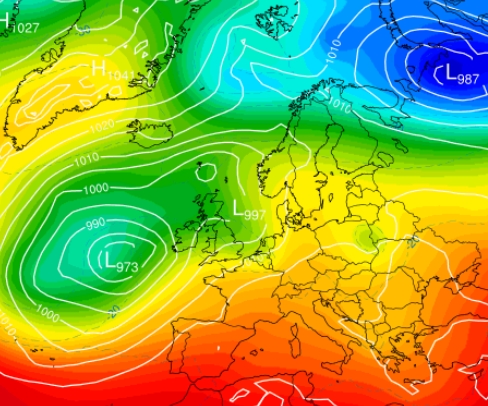 Semaine du 10-11-24 au 16-11-25 Le WE, c'est à une totale inversion des courants que nous allons assister avec la descente d'air polaire via une dépression nordique entre samedi et dimanche, précédée de petites pluies: