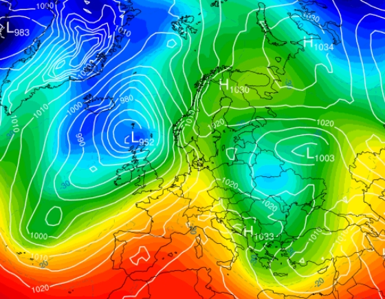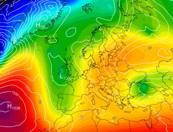 La semaine prochaine, via un anticyclone allant de la Scandinavie aux Balkans, de l'air assez froid et sec continental venant de l'Europe de l'Est, où y règne un hiver rude, va s'installer pour la semaine avec un temps plutôt lumineux: