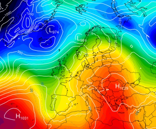 La semaine prochaine, alors que les perturbations vont atteindre l'ouest de la France, nous serons plus ou moins protégés par l'anticyclone centré sur l'Europe de l'Est. En fin de période, lors d'une une phase de transition, nous devrions avoir un épisode pluvieux: